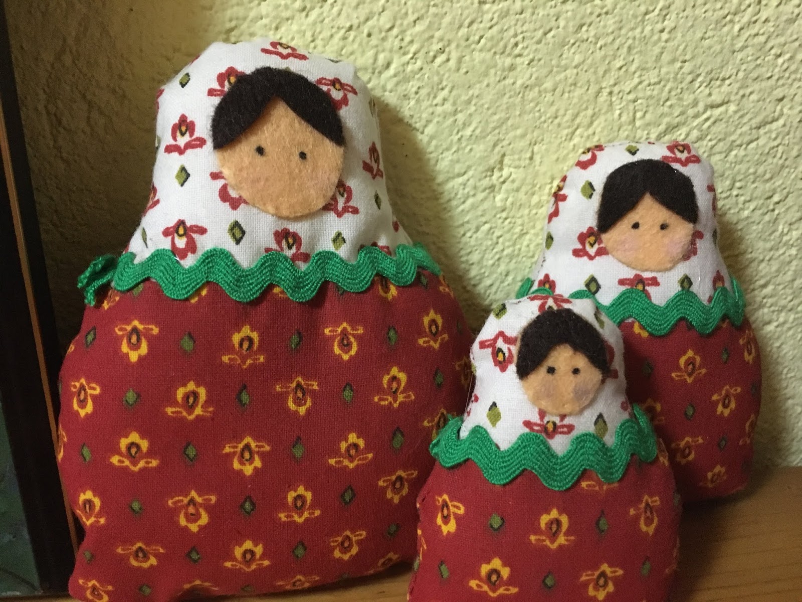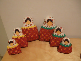 Hice dos juegos de Matrioskas, una para mis suegros y otras para mi cuñada, aquí aún no había pintado las carita.